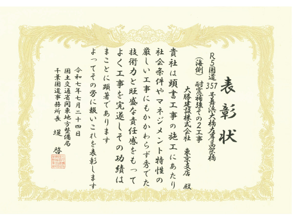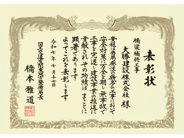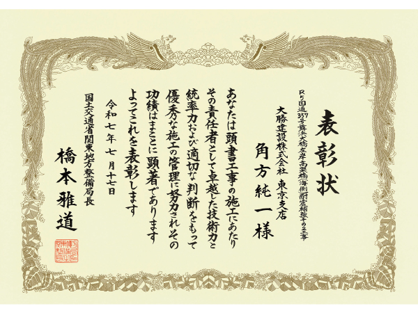 令和7年7月17日にて、関東地方整備局長より表彰を頂いております。