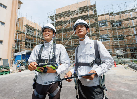 施工管理の仕事では、特に上司や職人さんとのコミュニケーションが大切です。解らない事は上司に聞いて、職人さんと綿密に打ち合わせをします。工程を把握して、前もって次の段取りに備えておくのが私の仕事です。
